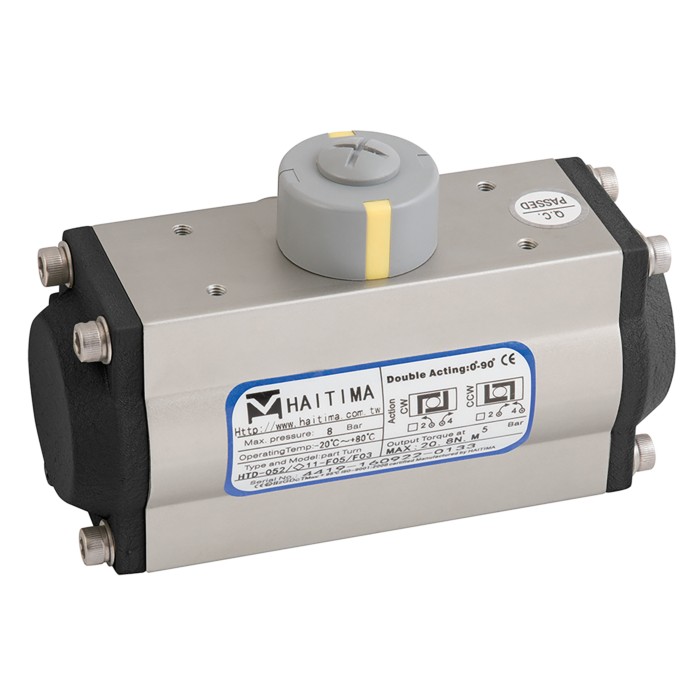 Features: 0-90ᄚ rotation angle to pilot ball, butterfly and plug valves. Double acting torques from 9 to 3916Nm at 6 bar. Single acting torques from 9.5 to 1547.5Nm at 6 bar. Hard anodized aluminium body. ATEX II 2GD c T5 certification. Conforms to ISO 5211, DIN 3337 and VDI/VDE 3845. Epoxy coated end caps. NAMUR pneumatic connection for solenoid valve installation.